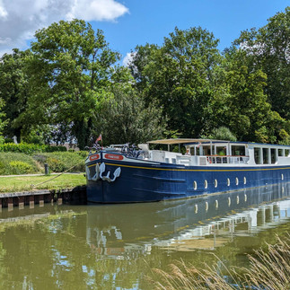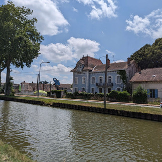 More beautiful canals today. People were motoring their boats up and down enjoying the peace and serenity. The fields and fields of sunflowers looking for those morning rays was an awesome inspiring moment. We had to stop and take it all in. Our morning coffee at the campsite is never enough so we stopped fairly early at this cute lock house that served coffee. The lady could not speak English but she brought the goods. We are finding less people speak English in the countryside but we are getting better at Google Translate and hand signs.