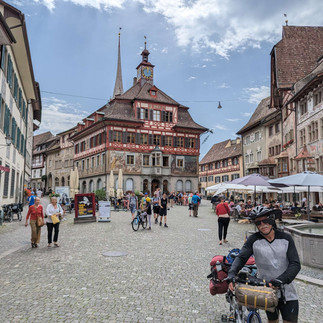 We had an excellent two days in Meersburg at the Victoria hotel but the time came to leave. We headed to the ferry for a ride across to Kontanz where we will begin pedalling. With a beautiful day stretched out before us the flat trail took us along an emerald green shoreline dotted with villages and homes. We stopped for a quick ice cream around 11:00am only to be told by the shop keeper that they were closed. But he grumpily took our money in exchange for the ice cream bars. We were happy.